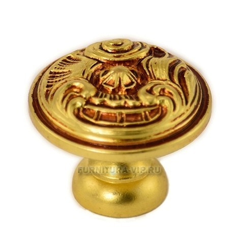 Ручка кнопка 120.35 OLD GOLD, материал Латунь, отделка Французское золото, d=35 мм